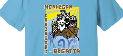 The 2026 Monhegan Cardboard Regatta will take place August 6th. Purchase this year's t-shirt (pictured here) on the island this summer!